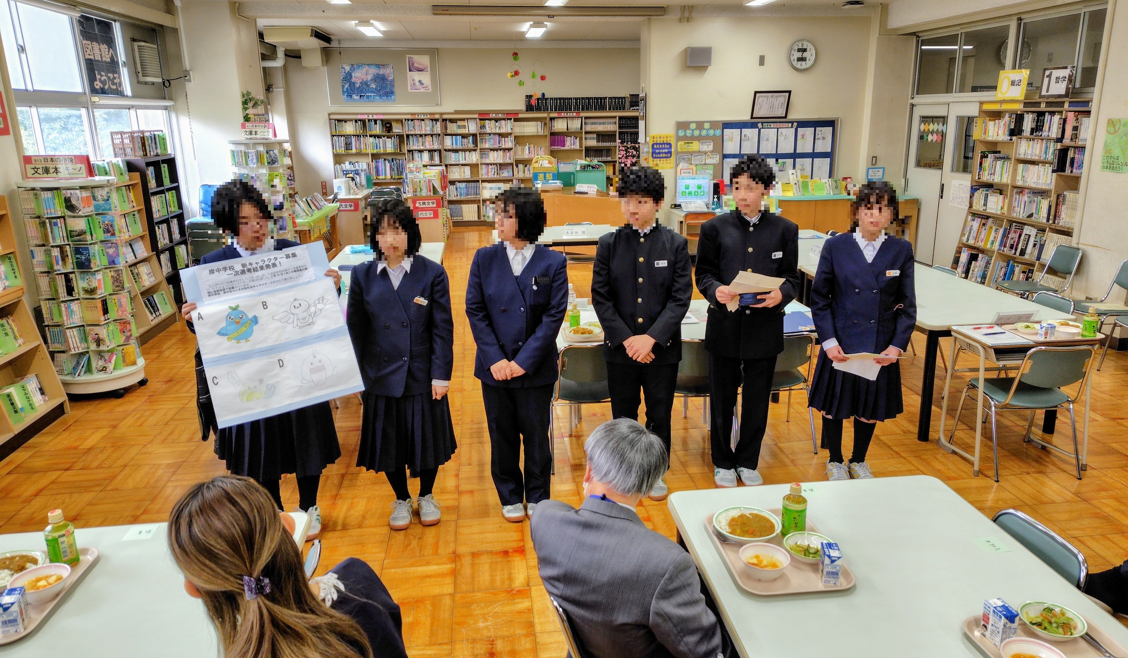 2月21日(金)に第3回学校運営協議会及びいじめ対策委員会を実施いたしました。今回は、生徒会の生徒と「高砂岸一女クリーンアップ大作戦」の実施について議論していただき、たくさんのアイデアを頂戴しました。授業参観では、Solaフロアの見学や8組の学習発表会の見学(手作りラーメンの試食)をしていただきました。